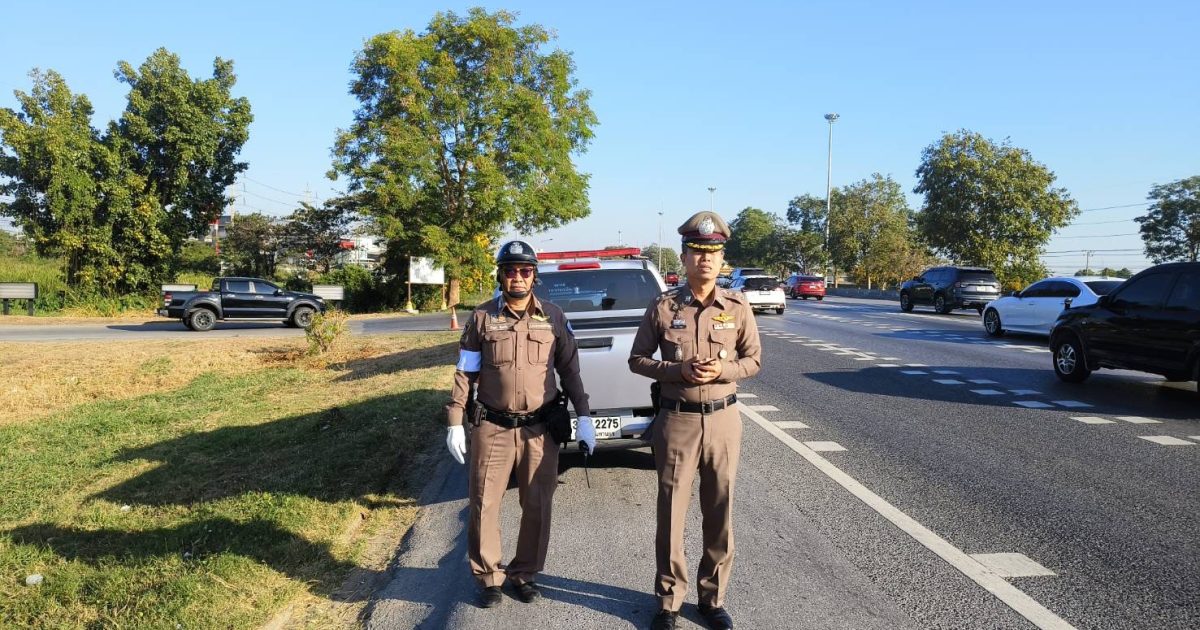 พร้อมกำลังจราจรตรวจการจราจร เส้นทางเอเชีย ทล.32 บริเวณจุดพักรถพอโตโก