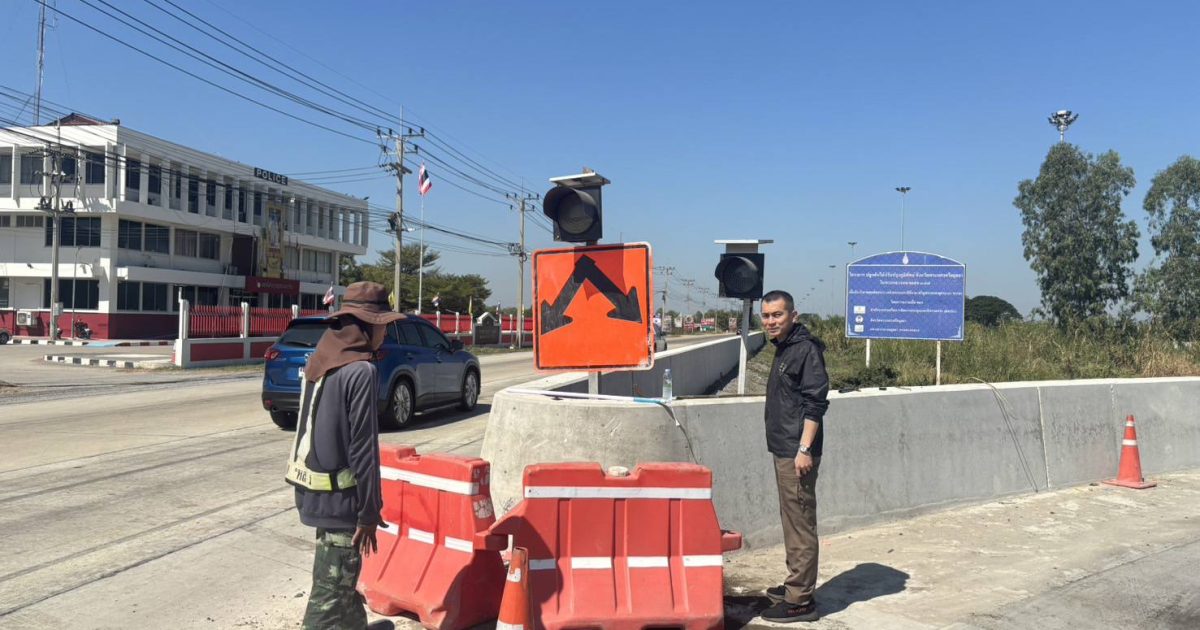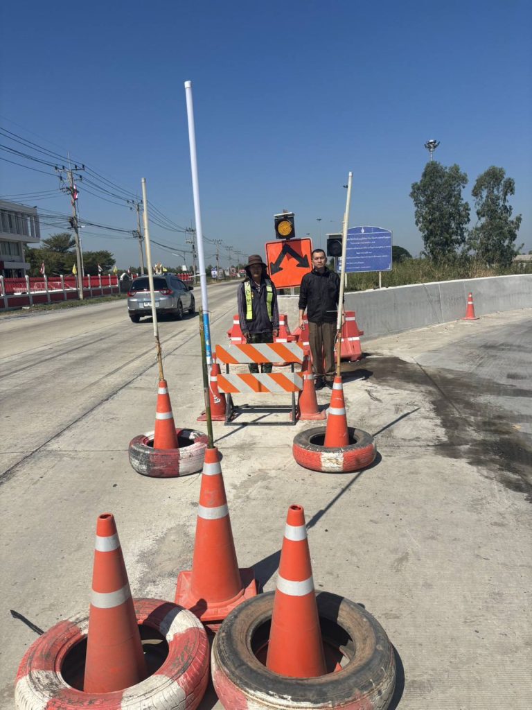 ผกก.สภ.บางปะอิน ติดตั้งป้าย กรวยยาง ไฟส่องสว่าง ป้องกันอุบัติเหตุ