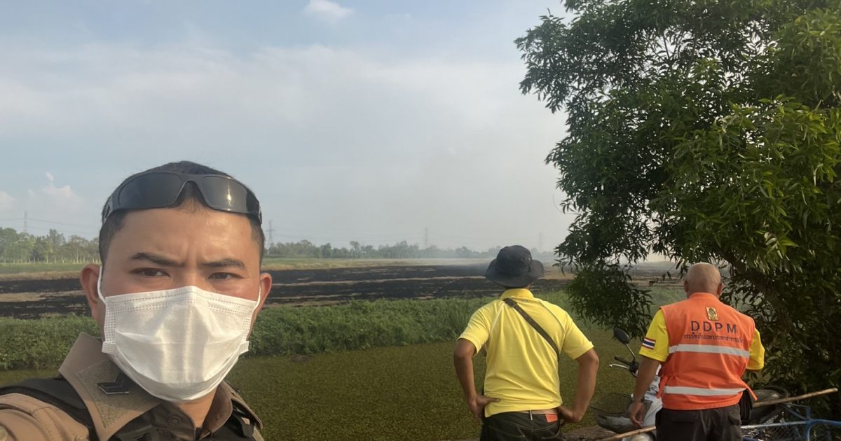 สายตรวจ ประชาสัมพันธ์ชาวบ้านในพื้นที่ ให้ดับไฟในการเผานา