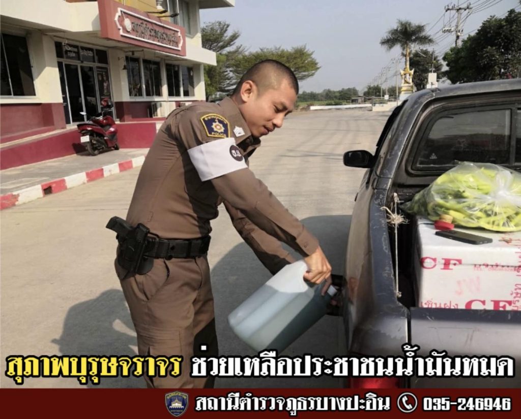สุภาพบุรุษจราจร สภ.บางปะอิน ช่วยเหลือประชาชนรถน้ำมันหมด