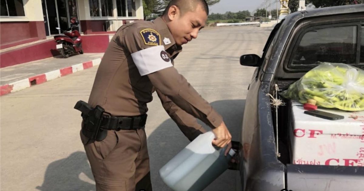 สุภาพบุรุษจราจร สภ.บางปะอิน ช่วยเหลือประชาชนรถน้ำมันหมด