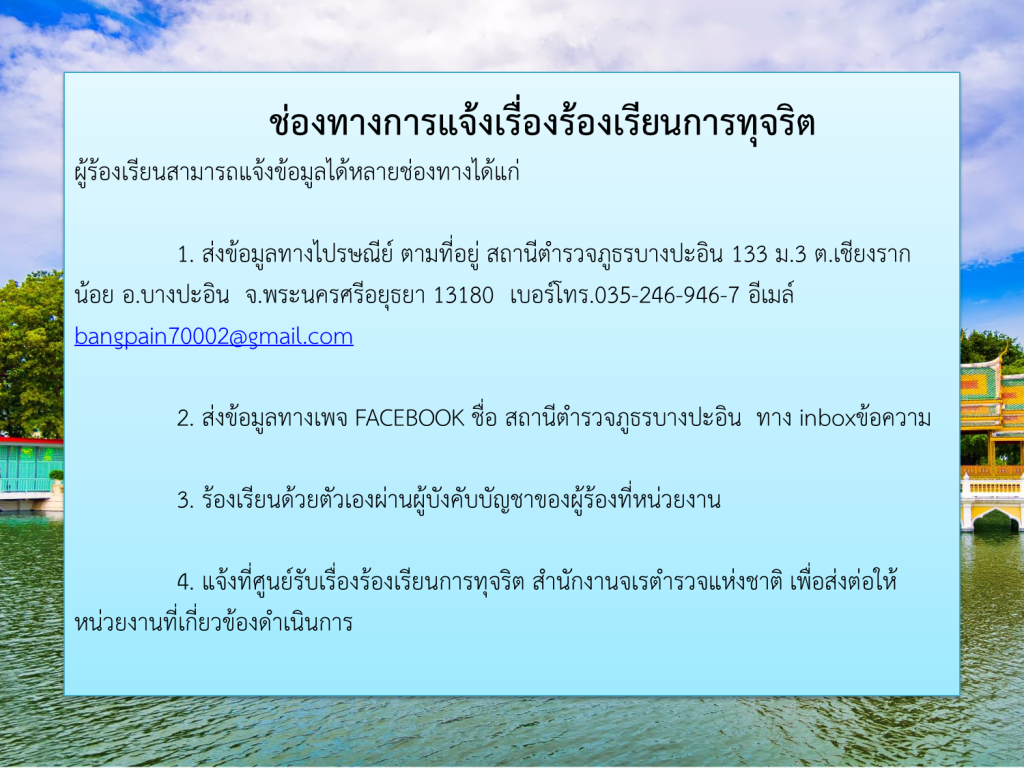Sitemap | © 2025 สถานีตำรวจภูธรบางปะอิน สงวนลิขสิทธิ์.